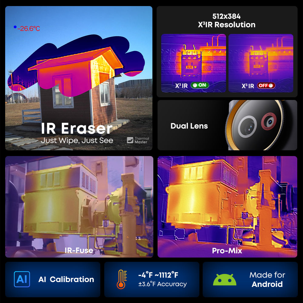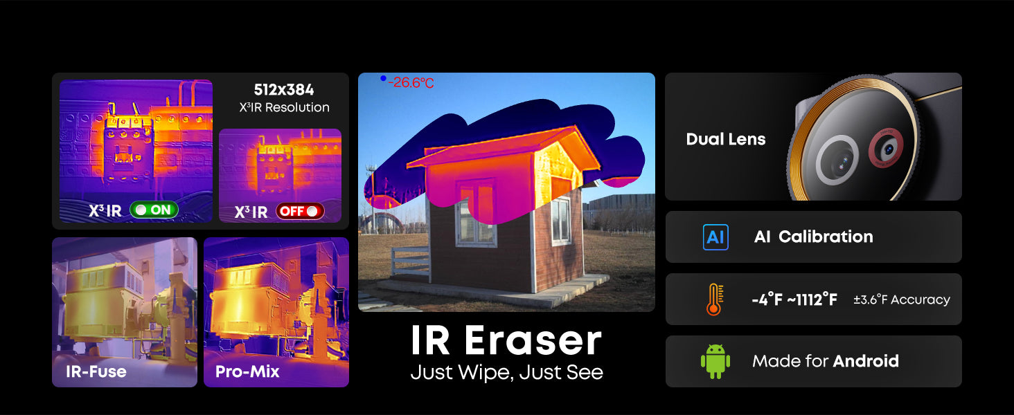 • AI Dual-Lens, IR Eraser for fast switching between thermal and original views.