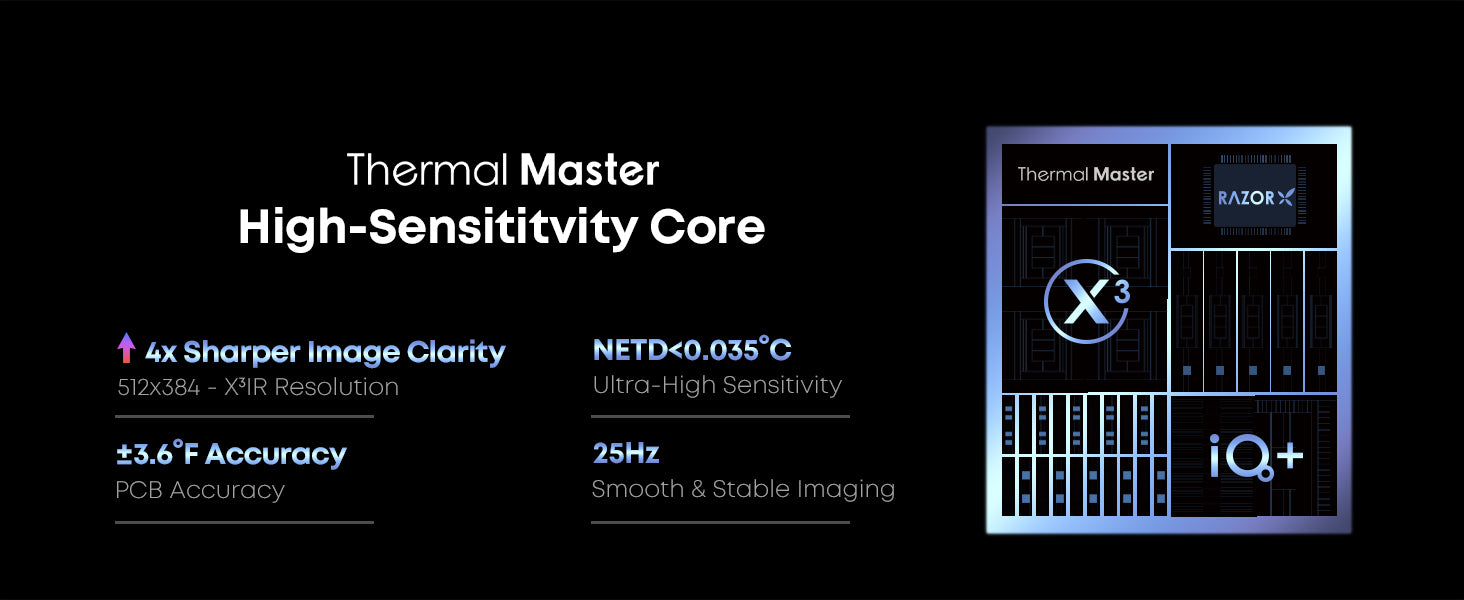 • ≤35 mK, 25 Hz refresh rate, –20°C–600°C range (±2°C accuracy)