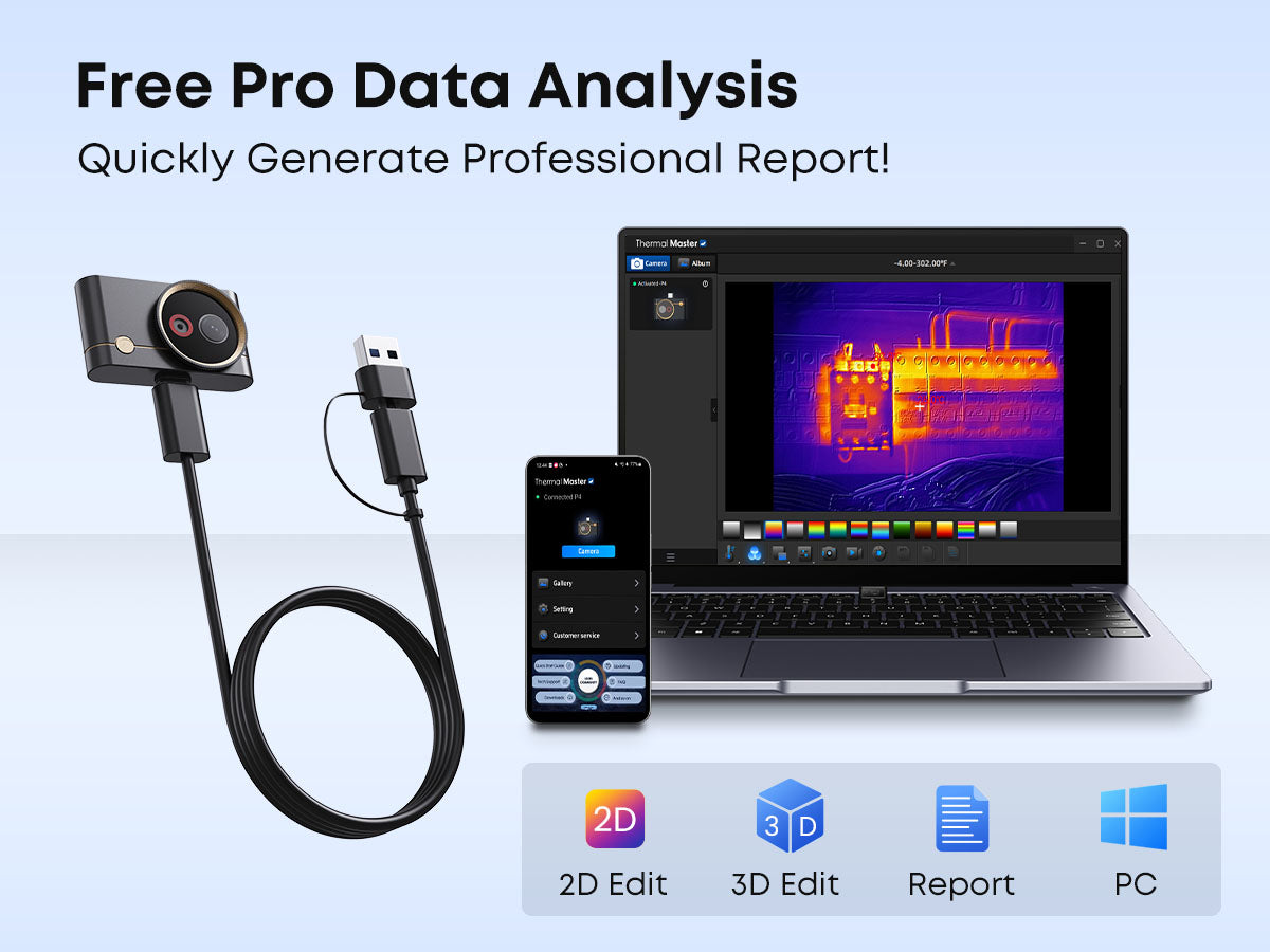 Turn flat thermal data into vivid 3D heat maps, accurately locating hotspots to streamline diagnostics and speed up repairs.