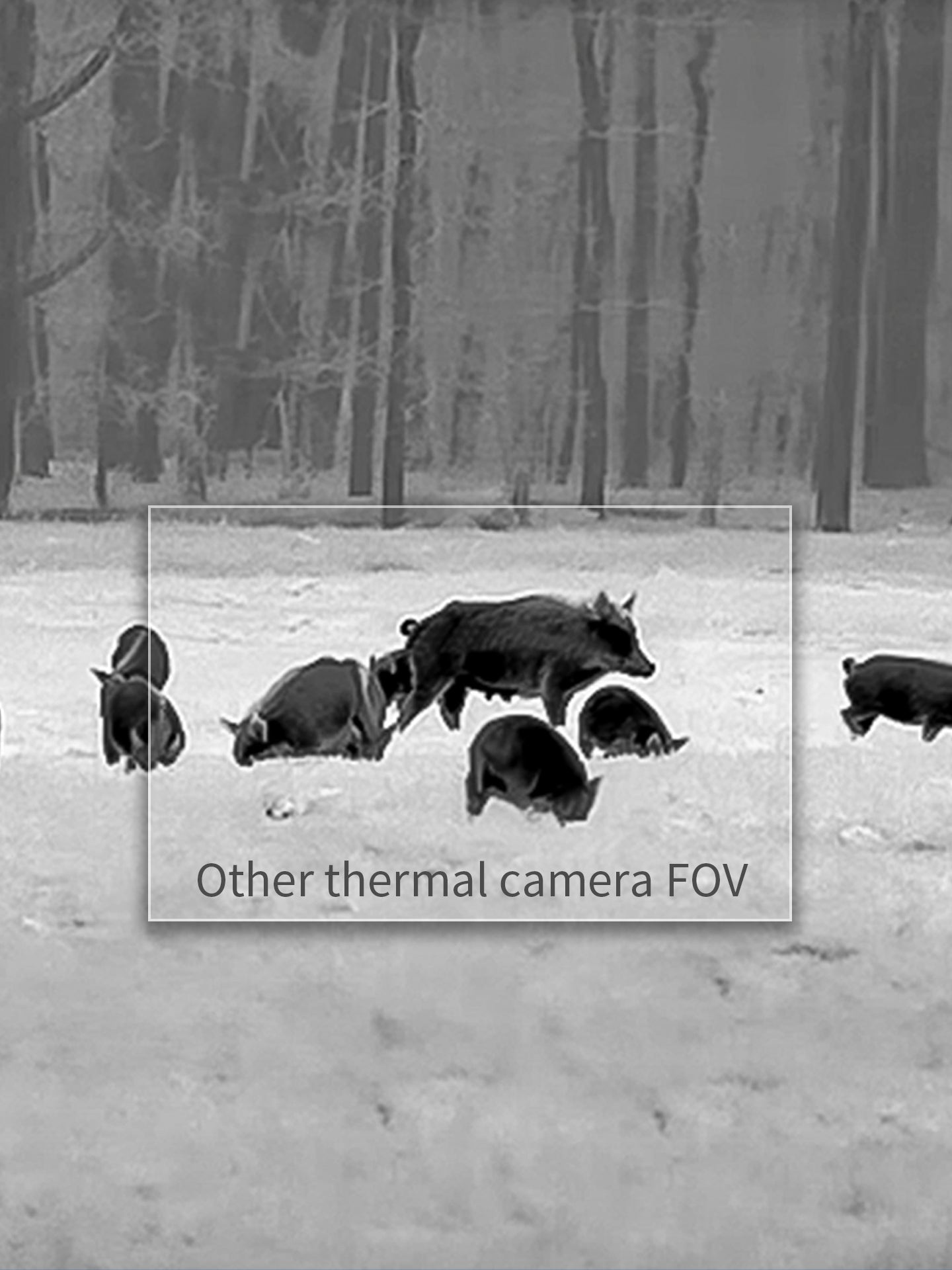 Mit einem doppelt so großen Sichtfeld im Vergleich zu anderen Wärmebildkameras für den Außenbereich bietet die Knight eine überragende Sucheffizienz. Ihr großer Beobachtungsbereich ist ideal, um große Flächen schnell und effektiv zu scannen.