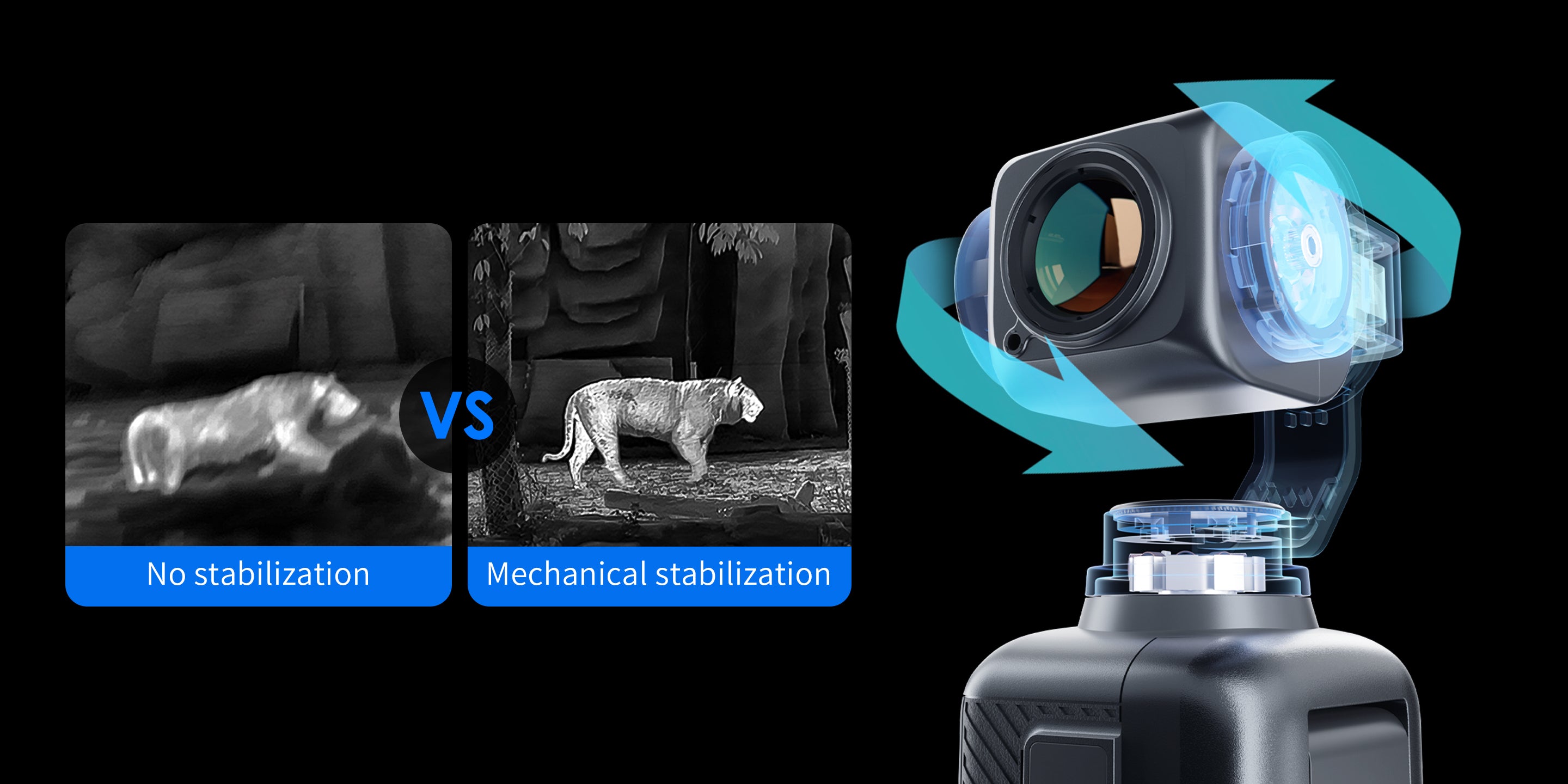 Knight verfügt über drei Achsen und mechanische Stabilisierung 5.0 und sorgt so für eine reibungslose und stabile Leistung unabhängig von der Bewegung. Jedes Ziel bleibt klar, auch bei wackeligen Bedingungen.