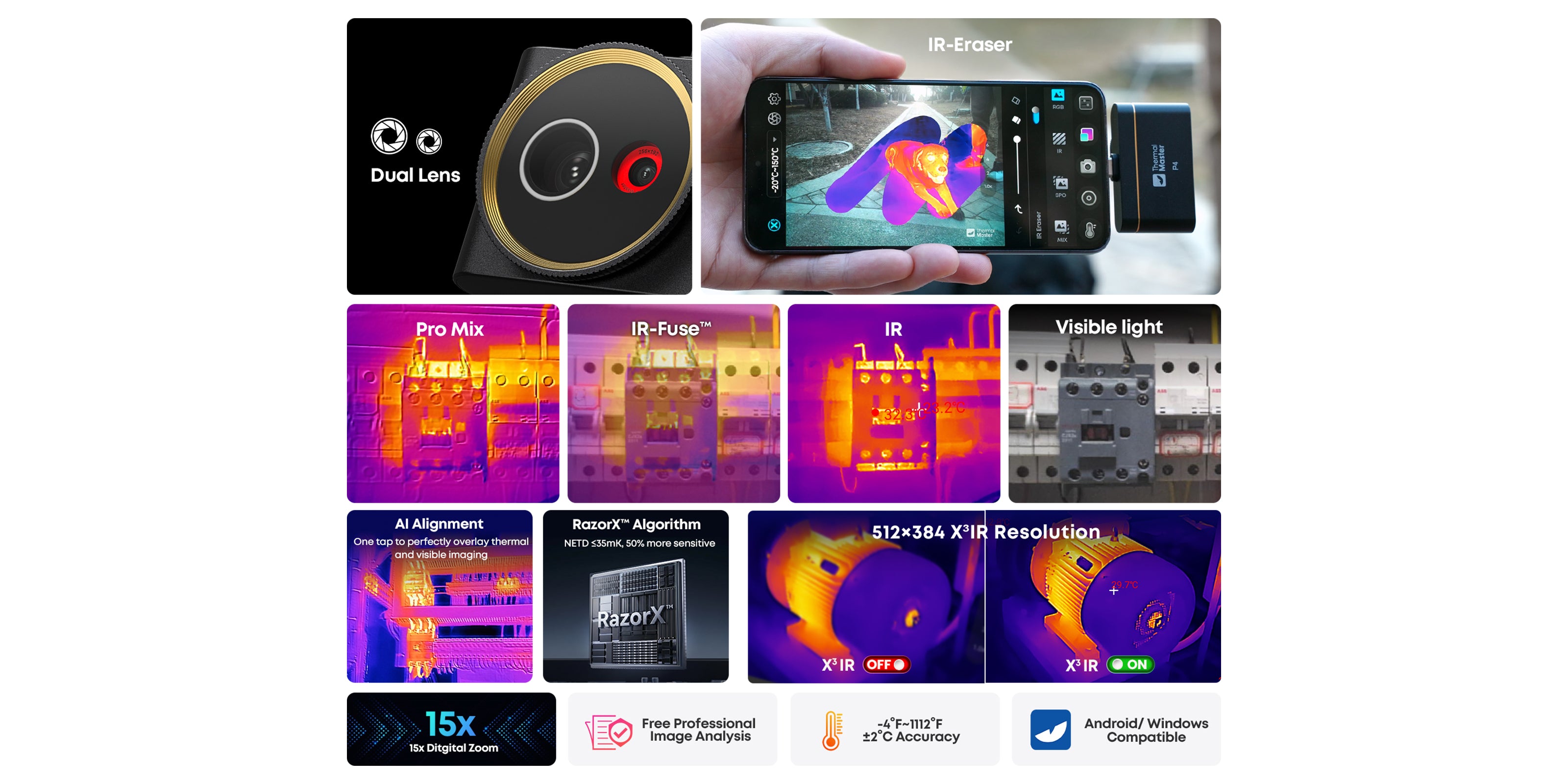 - AI Dual-Lens, IR Eraser for fast switching between thermal and original views.