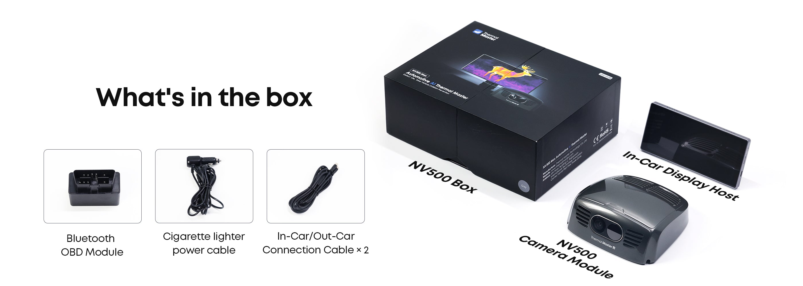 NV500 is a 3-in-1 dashcam with a thermal imaging function. It is not only a smart dashcam, but also a device that can provide night vision driving assistance images for all weather, and can also be used as an OBD in the car, making your driving much safer.