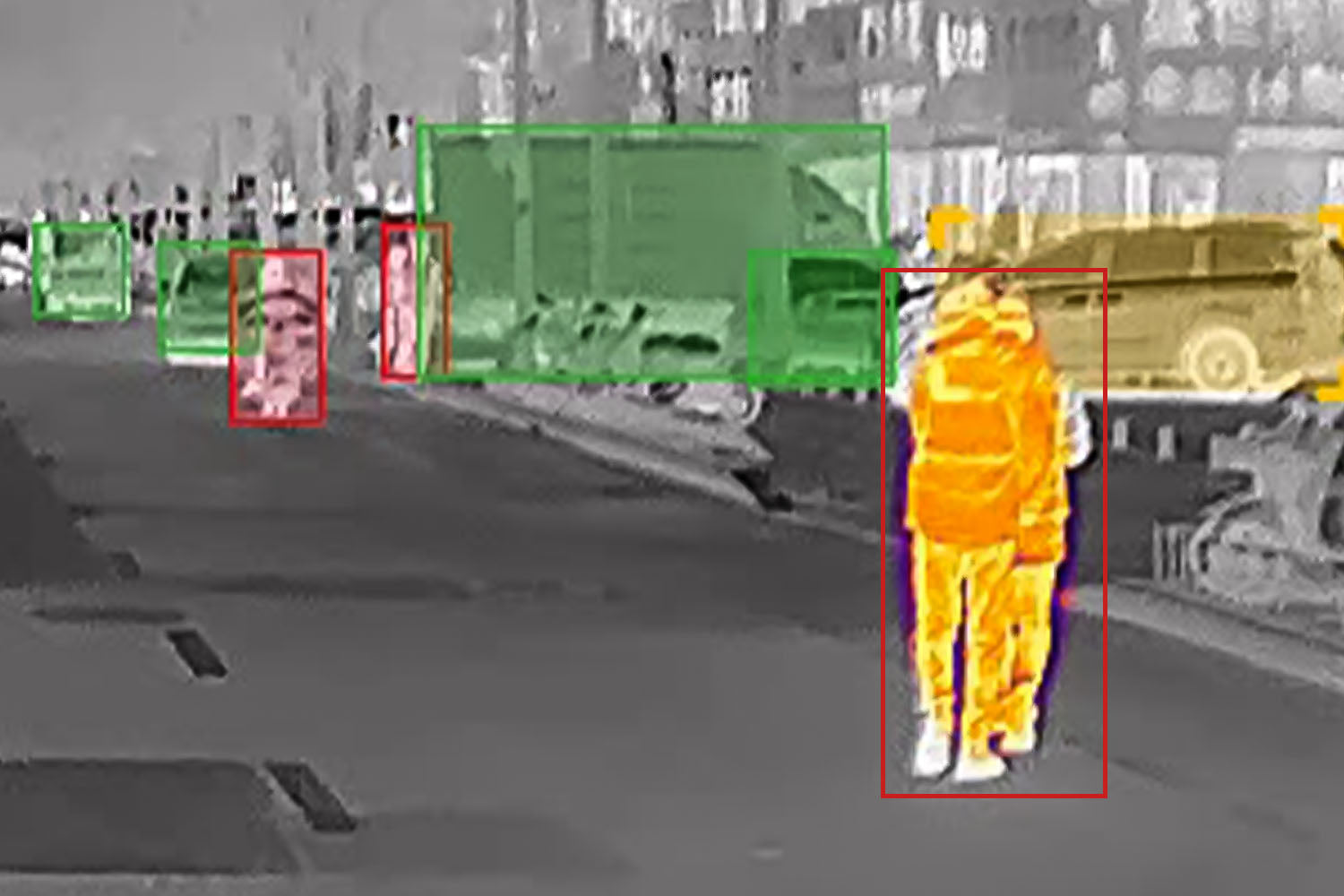 NV300MAX は、100 メートル以上離れた歩行者、自転車、車両を識別できる最先端の人間車両認識アルゴリズムを採用しています。システムは熱画像をリアルタイムで分析し、音と画像による警告を発して潜在的な危険を知らせます。このプロアクティブ警告システムは、2 ~ 3 秒以内に潜在的な危険を感知し、0.1 秒以内にすばやく警告を発するため、反応時間が向上し、事故のリスクが大幅に軽減されます。