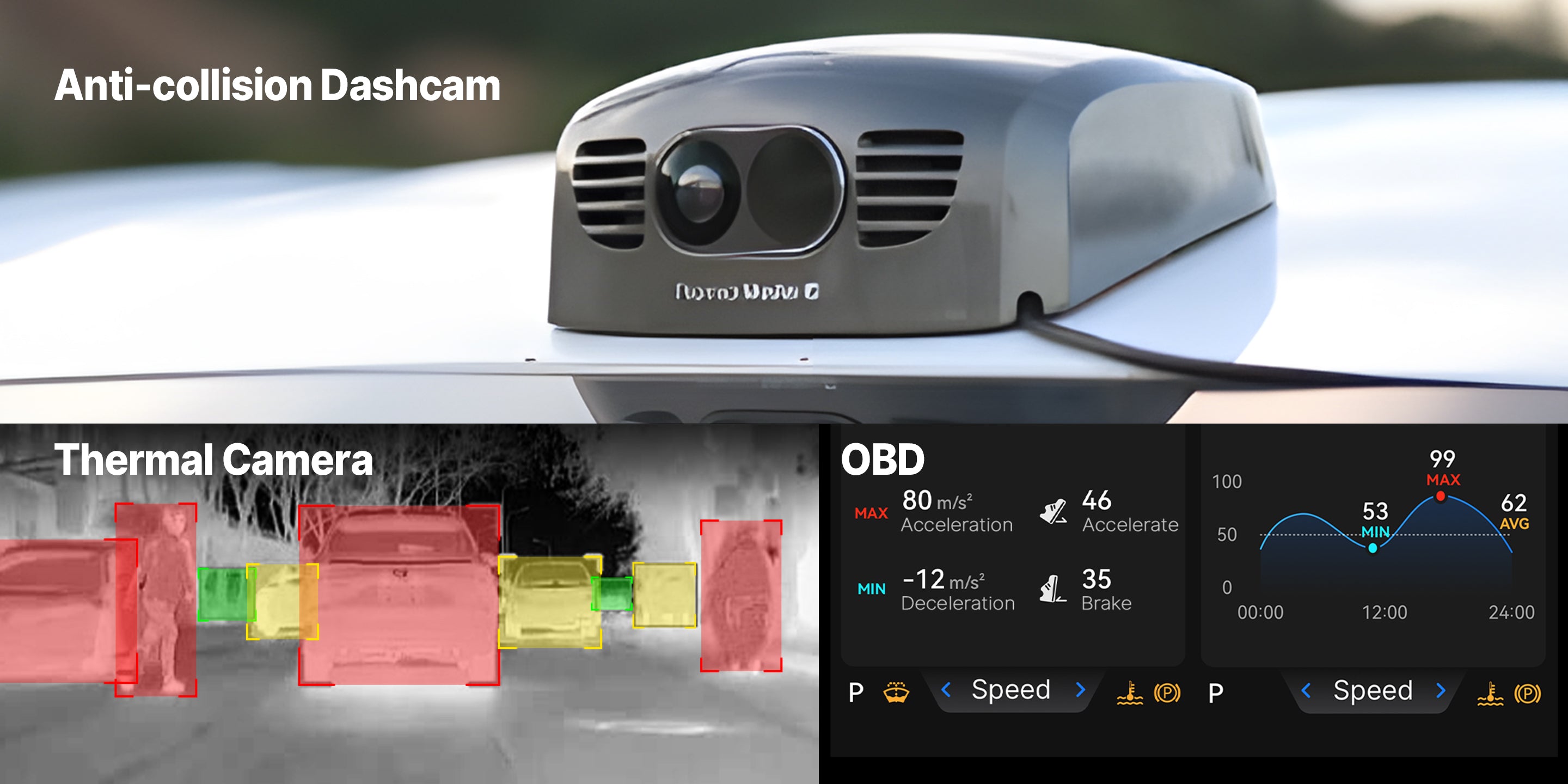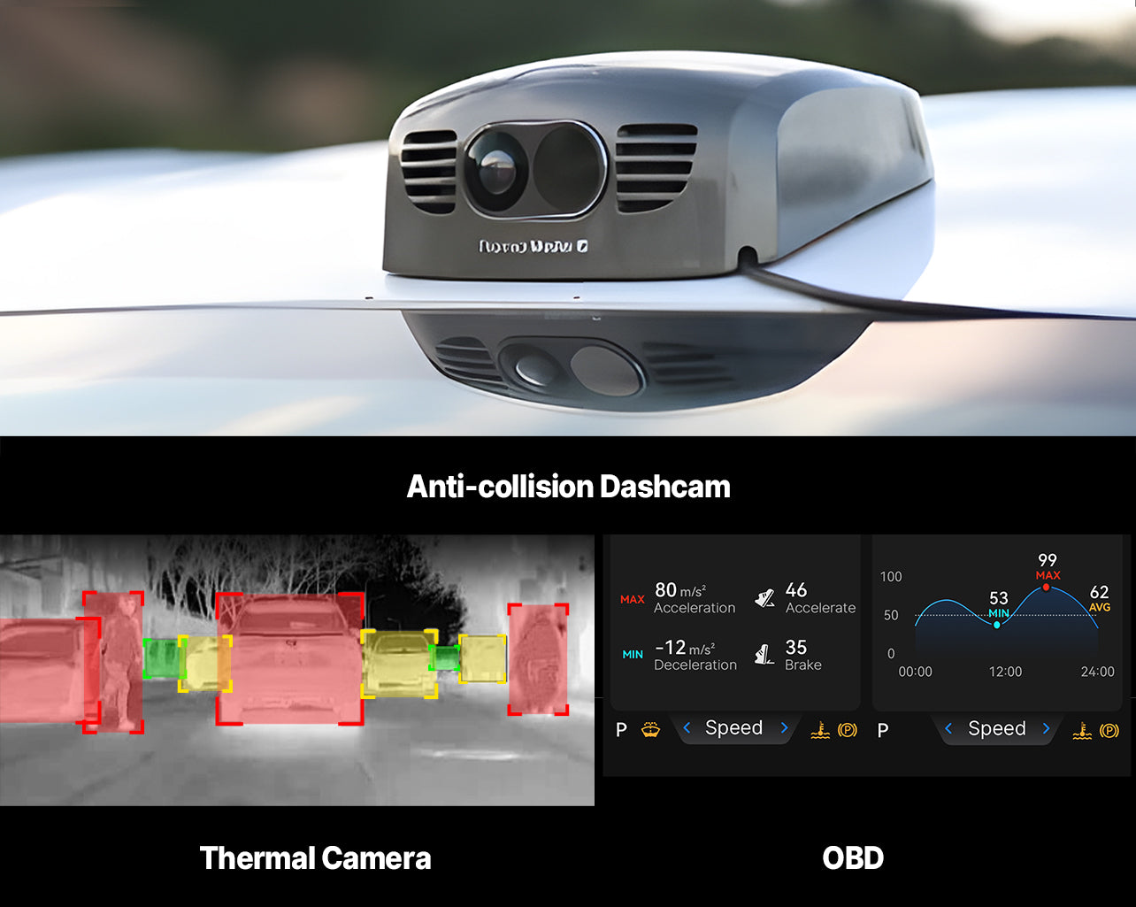 NV300 Max is a 3-in-1 dashcam with a thermal imaging function. It is not only a smart dashcam, but also a device that can provide night vision driving assistance images for all weather, and can also be used as an OBD in the car, making your driving much safer.
