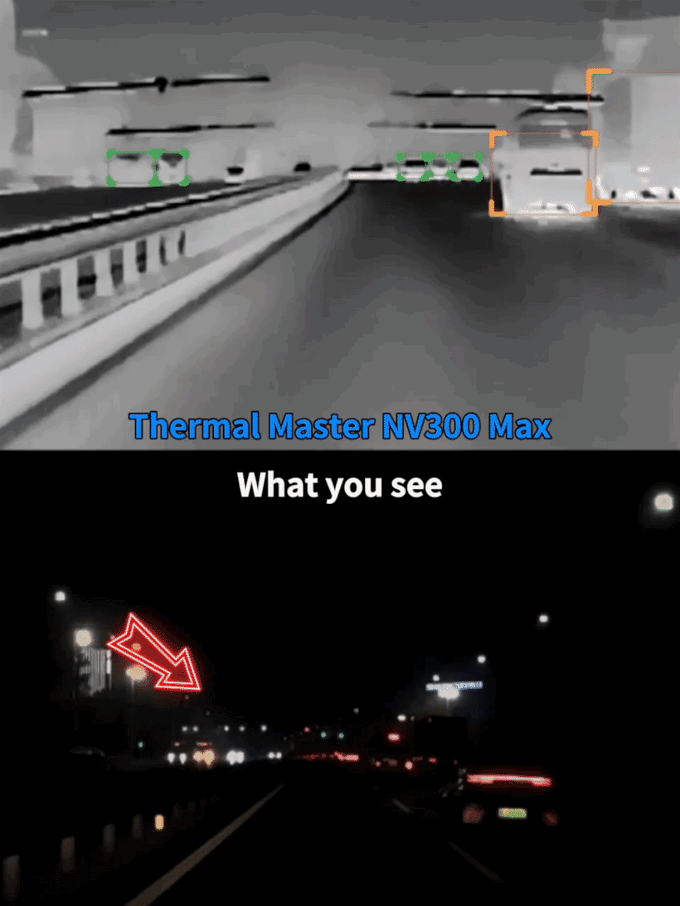 The NV300max can clearly detect temperatures ranging from -4 to 176℉ and provide early warnings in situations like cyclists in the dark, blinding glare from high beam lights, and deer or stray cats running in harsh weather conditions such as rain, snow, or fog.