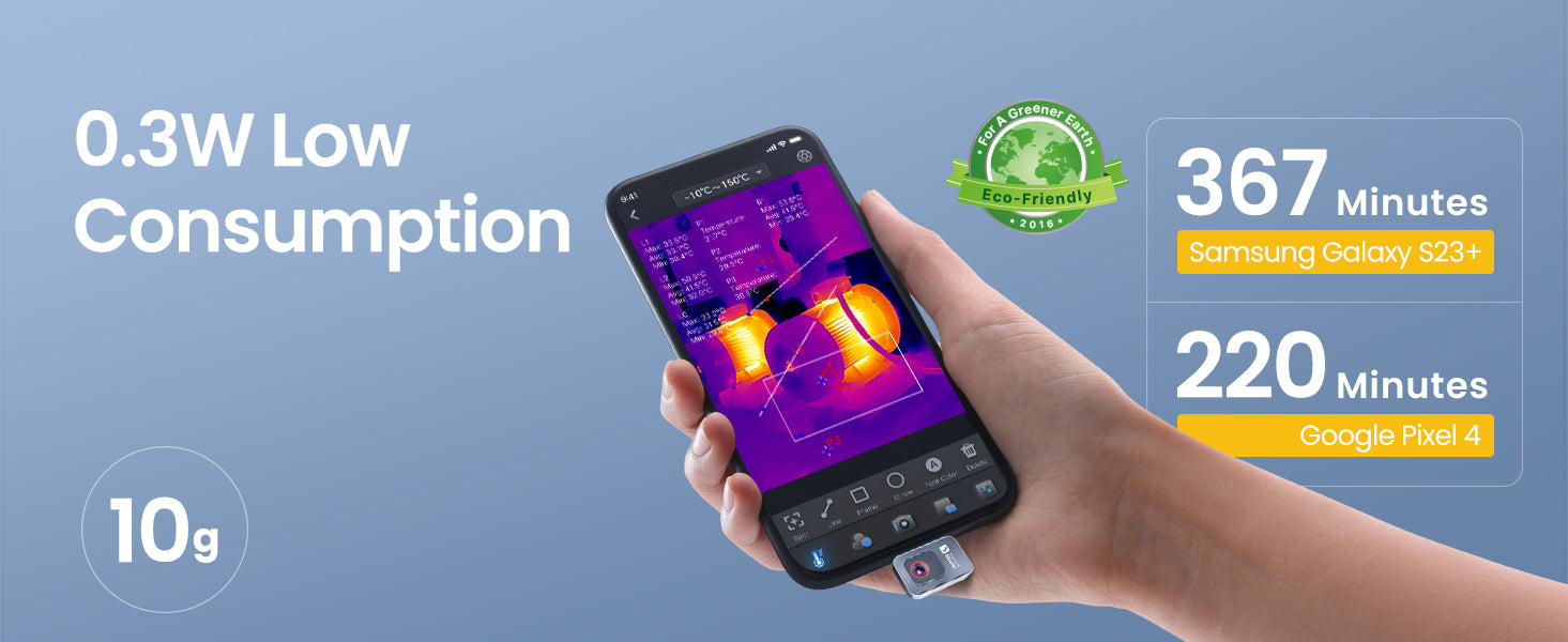 Weighing only 10g, 256x192 IR Resolution Thermal Imaging Camera, 15X Zoom Thermal Imager, 1.5℃ PCB Accuracy, -4°F~1112°F Temp Range.