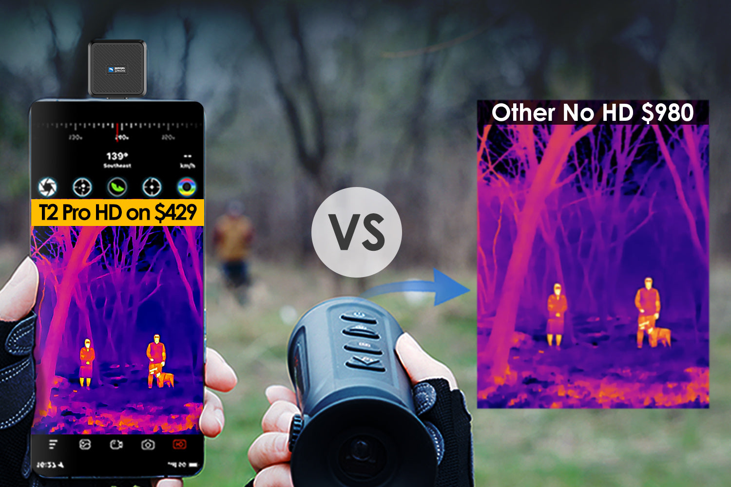 T2 Pro features exclusive HD and Highlight modes. The Highlight mode makes targets stand out, especially when game is covered by dense forest and brush. The HD mode provides ultra-clear and sharp thermal images.