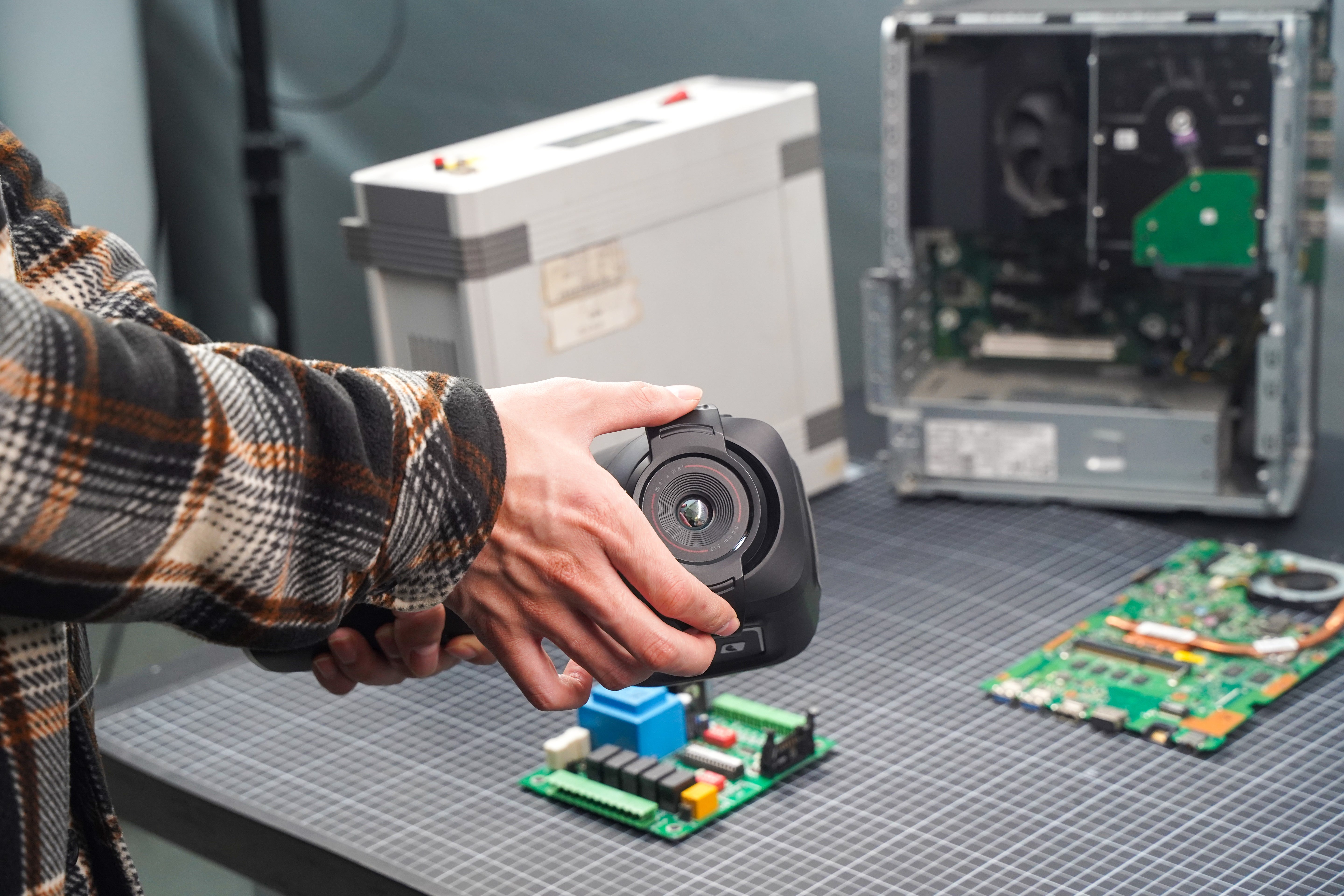 Thor 001 with detachable macro lens (8 cm) inspects 0.25 mm components, revealing PCB faults, early HVAC issues, and heat patterns on industrial gear.