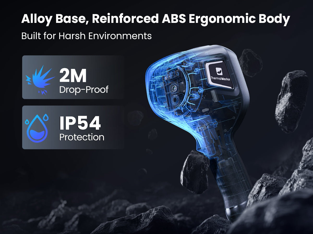 Thor’s build and packaging are specified in simple, verifiable terms for a thermal imaging camera handheld: it uses a metal body with a metal base, and ships with a hard plastic portable case for carrying and protection.