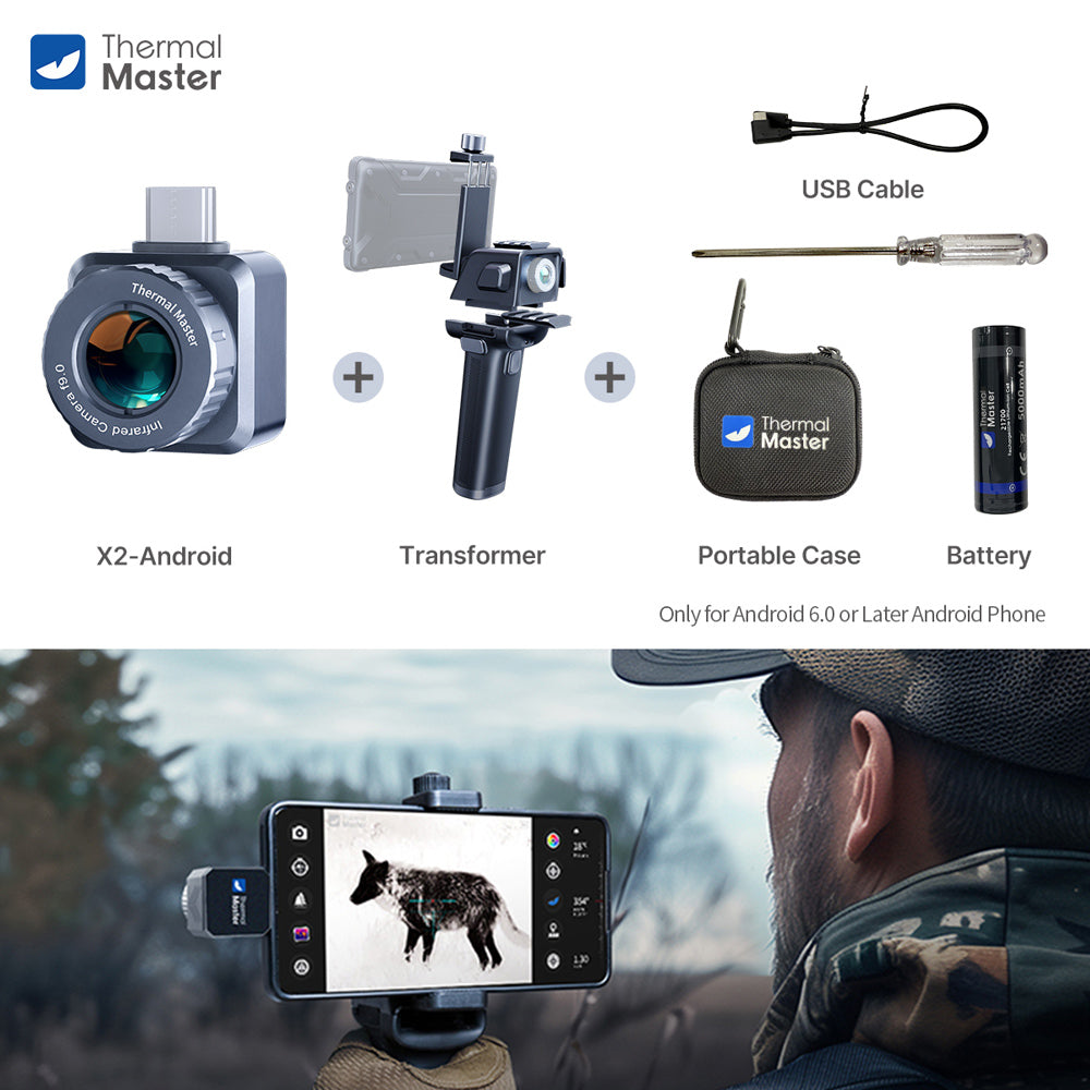The X2 Thermal Imaging Night Vision Monocular (Android version) enables long-distance detection and is suitable for outdoor adventures, off-road driving, wildlife observation, and rescue.